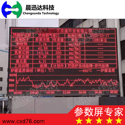 公司設計生產的工業參數顯示器(也稱:LED大屏、LED參數屏、工業參數屏、工業大屏、工業參數顯示屏、工業參數大屏幕,工業參數顯示板,工業參數看板,工業參數電子屏,上件參數看板、環保參數看板,環保信息顯示屏、連鑄大屏、連鑄LED屏、廢鋼參數屏、電力參數屏、中控參數屏、電力參數LED大屏)用于控制室、車間、監控室、戶外環保參數展示等場合,用于顯示電量、功率、頻率、溫度、濕度、壓力、液位、流量、轉速等各種工業參數的瞬時量、累計量。顯示采用大型數碼管、單雙色點陣LED屏、或全彩LED屏,以及各種尺寸工業LCD屏的方式,顯示方式靈活、清晰、醒目、直觀、性能穩定可靠、功耗低、壽命長。